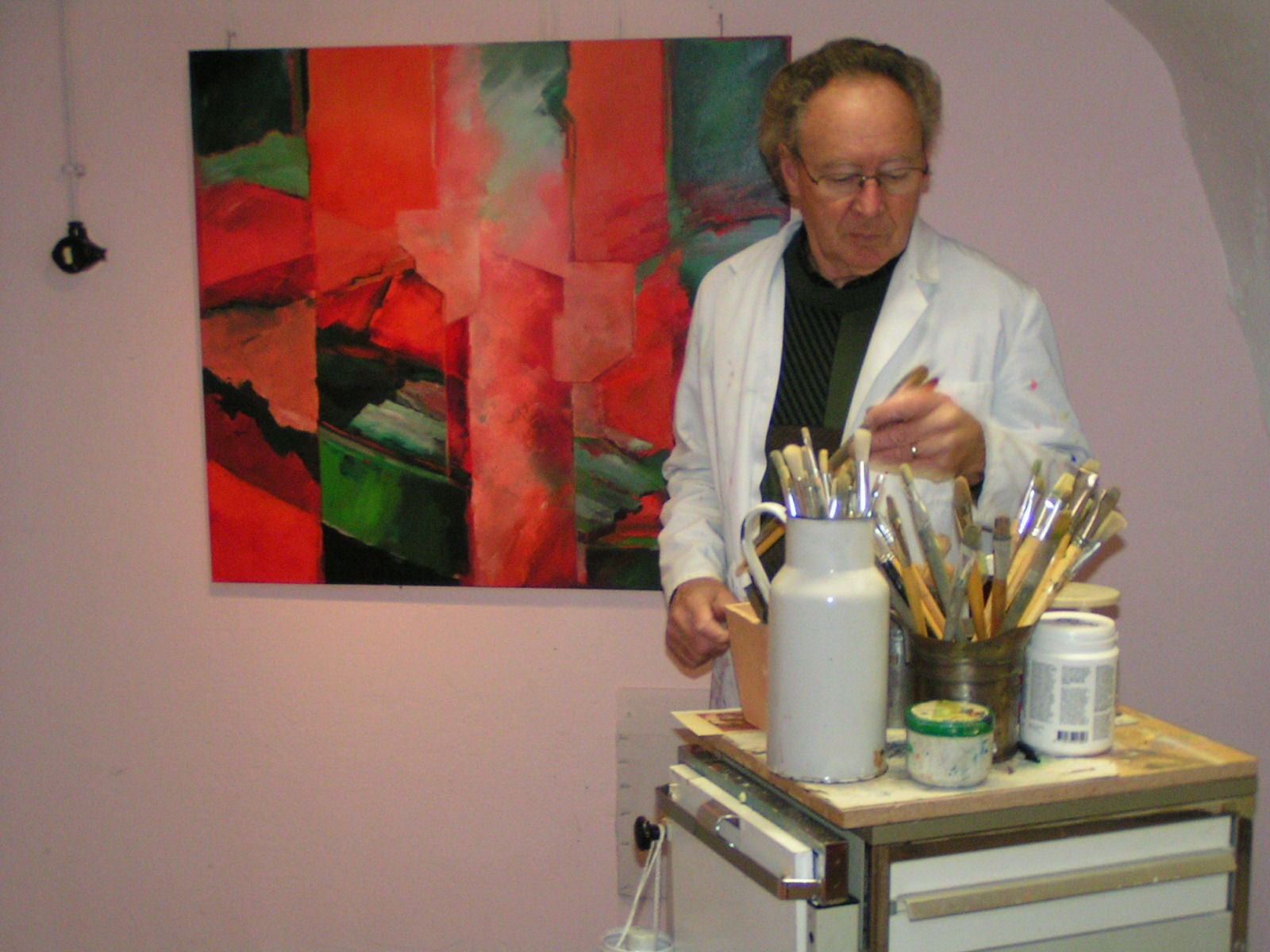 De moeilijkheidsgraad van het plein- air schilderen gaat hij niet uit de weg, maar geeft het schilderachtig weer.